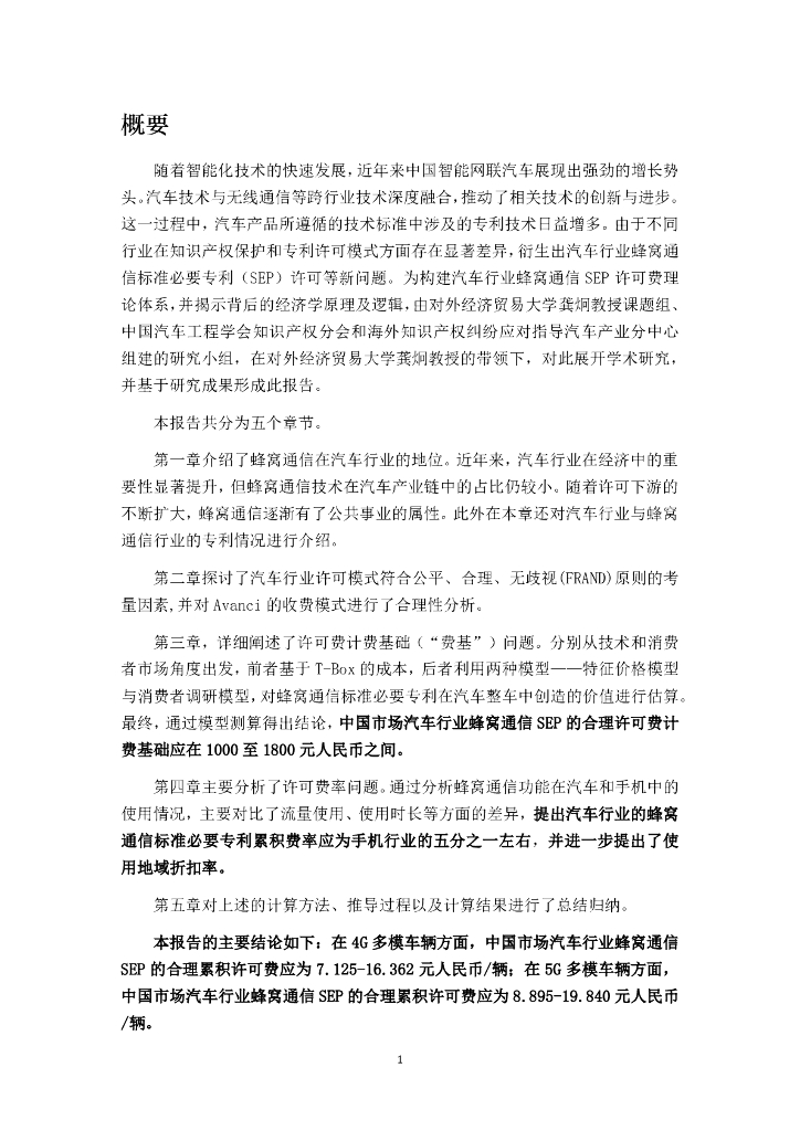 中国汽车工程学会:2024年汽车行业蜂窝通信标准必要专利许可费研究报告.pdf