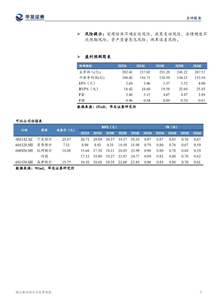 华龙证券:成都银行(601838)-2024三季报点评报告:利润稳定增长,资产质量优异.pdf