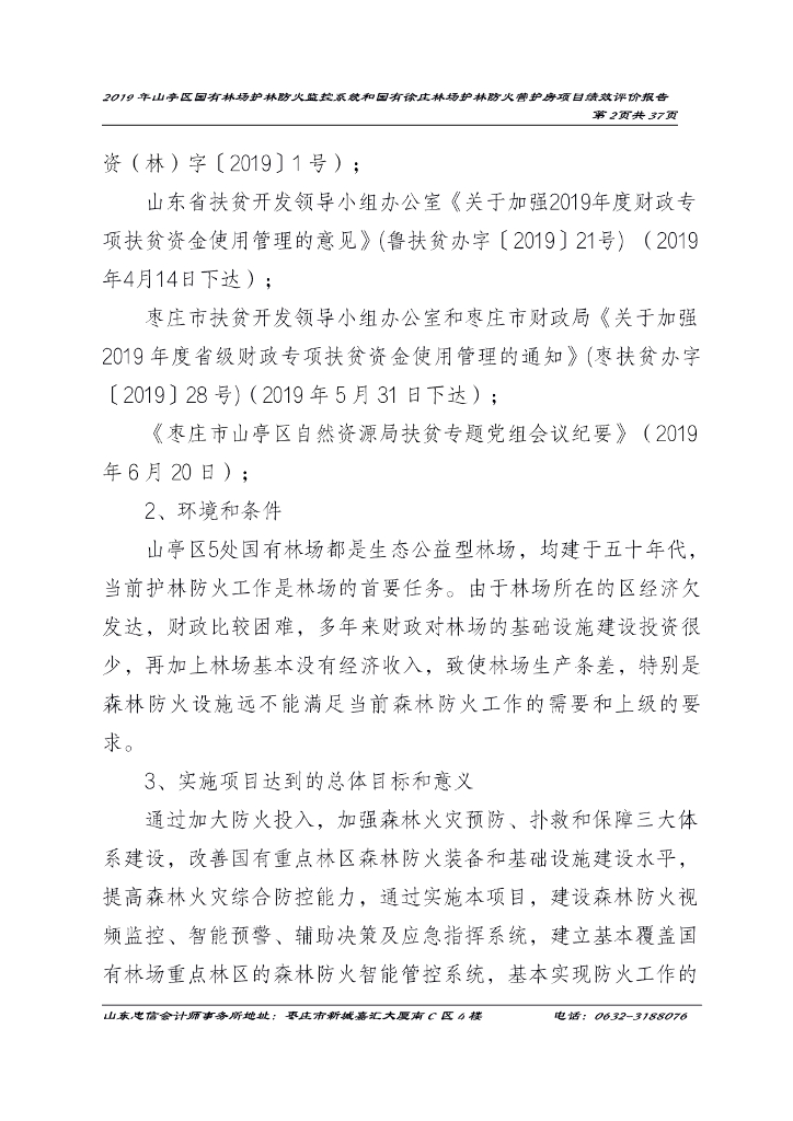 2019年山亭区国有林场护林防火监控系统和国有徐庄林场护林防火管护房项目绩效评价报告.pdf