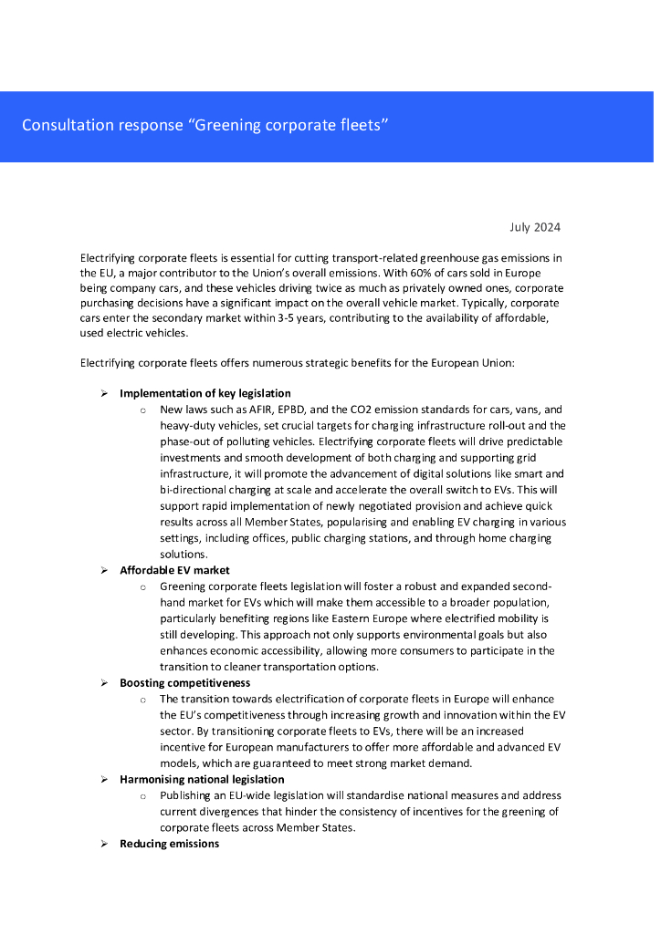 欧洲电力行业联盟:2024对欧盟委员会关于企业船队绿化的公众咨询的回应(英文版).pdf