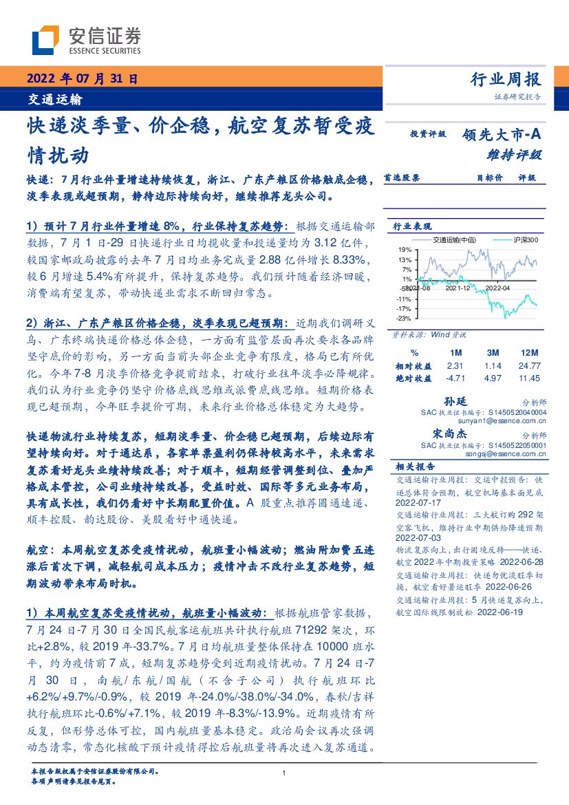 安信证券:交通运输行业周报:快递淡季量、价企稳,航空复苏暂受疫情扰动.pdf