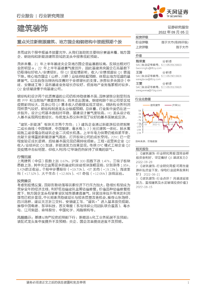 天风证券:建筑装饰行业研究周报:重点关注新能源建筑、地方国企和钢结构中报超预期个股.pdf