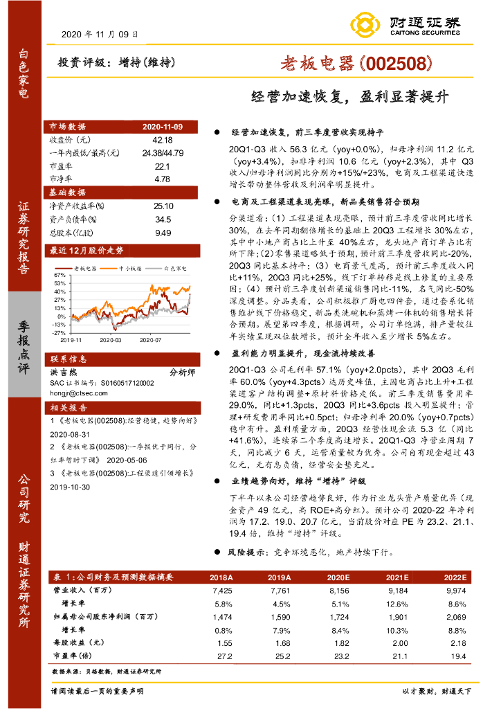 财通证券:老板电器(002508)-经营加速恢复,盈利显著提升.pdf