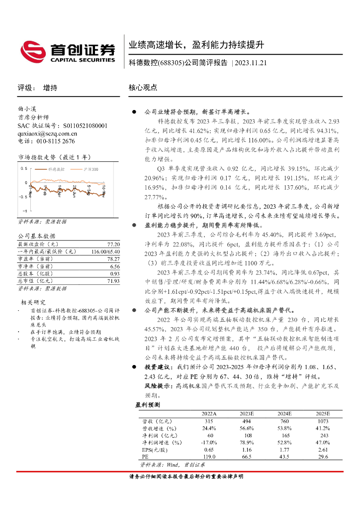 首创证券:科德数控(688305)-公司简评报告:业绩高速增长,盈利能力持续提升.pdf