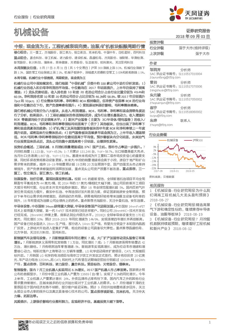 天风证券:机械设备行业研究中报:现金流为王,工程机械表现完美,油服/矿机板块酝酿周期行情.pdf