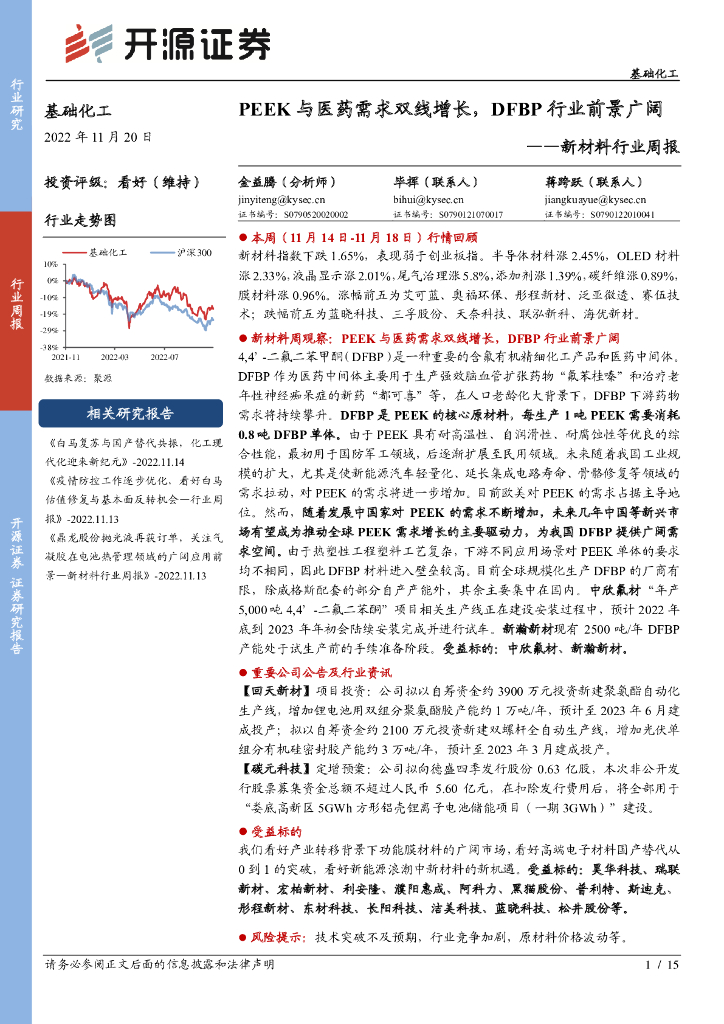 开源证券:新材料行业周报:PEEK与医药需求双线增长,DFBP行业前景广阔.pdf