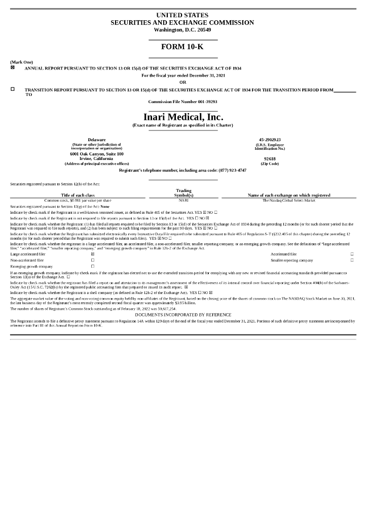 Inari Medical, Inc.(NARI)2021财年年度报告(英文版).pdf