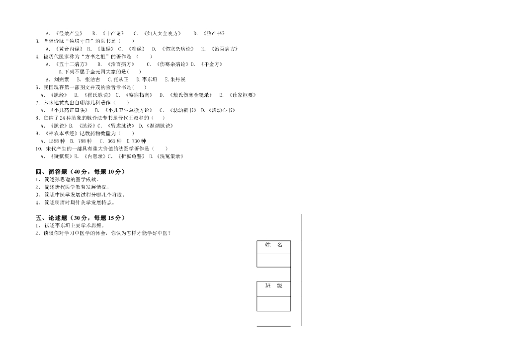 《中国医学史》06级七年制中国医学史试卷.pdf
