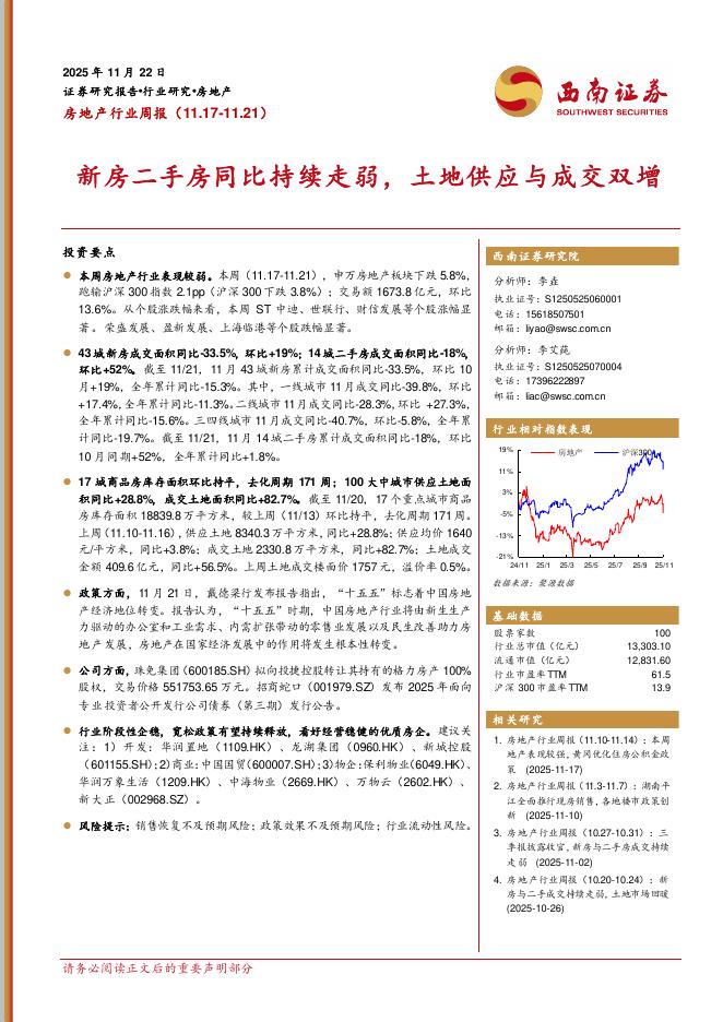 西南证券:房地产行业周报:新房二手房同比持续走弱,土地供应与成交双增.pdf