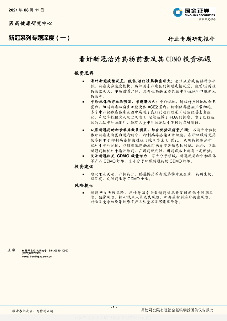 国金证券:新冠系列专题深度(一)看好新冠治疗药物前景及其CDMO投资机遇.pdf