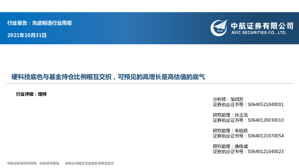 中航证券:先进制造行业周报:硬科技底色与基金持仓比例相互交织,可预见的高增长是高估值的底气.pdf