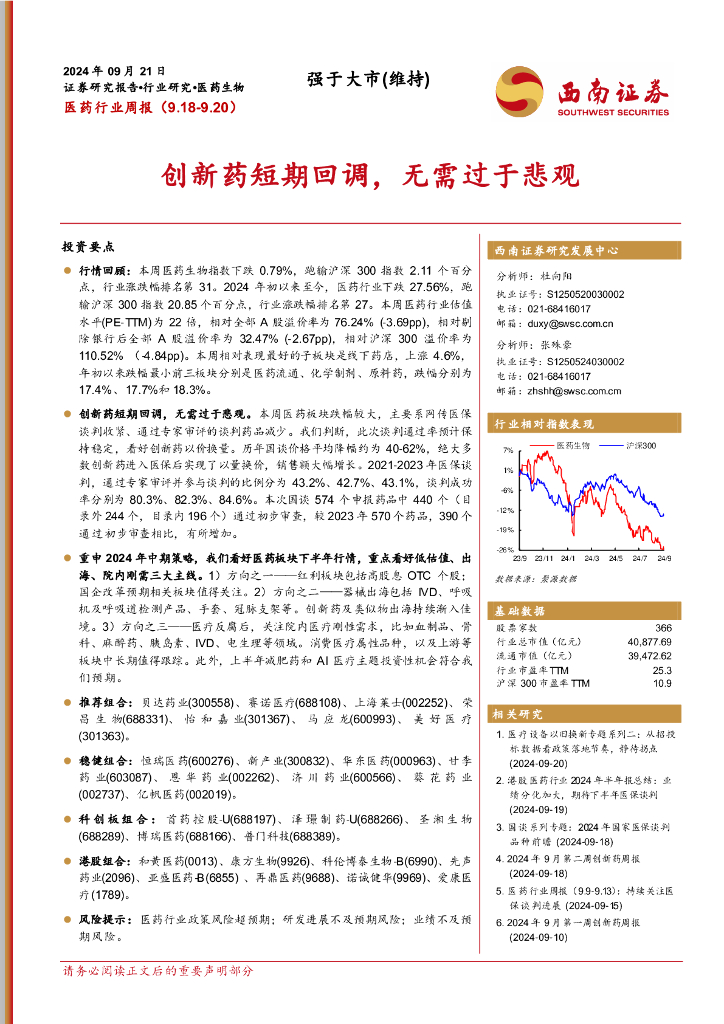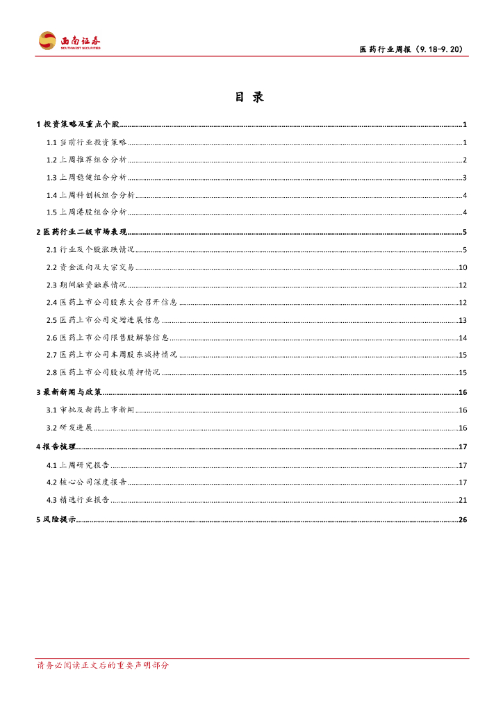西南证券:医药行业周报:创新药短期回调,无需过于悲观.pdf