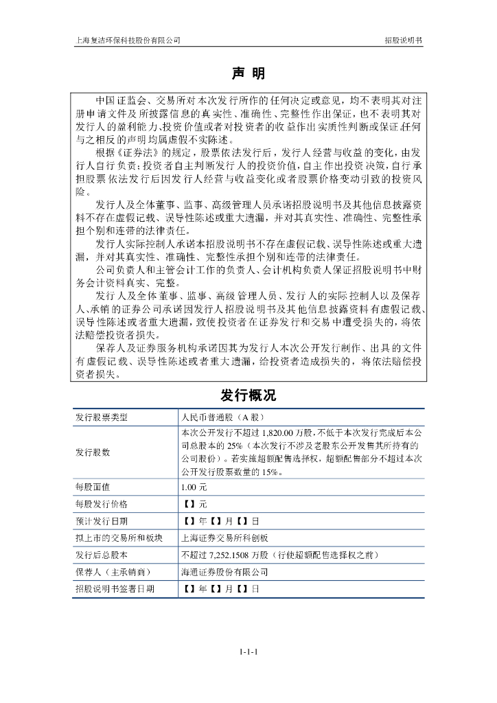 上海复洁环保科技股份有限公司上交所科创板IPO上市招股说明书.pdf