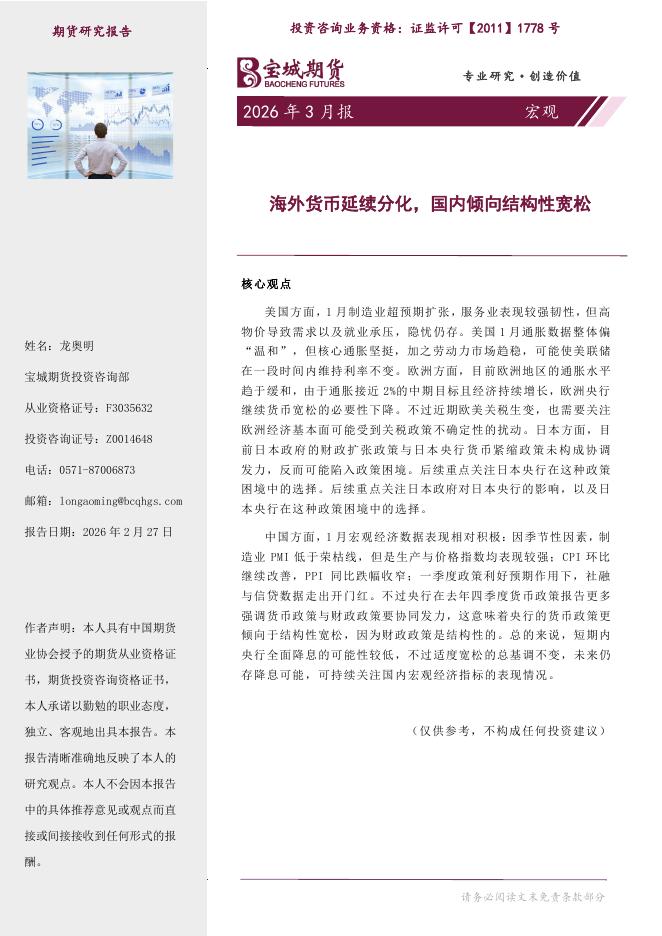 宝城期货:宏观月报:海外货币延续分化,国内倾向结构性宽松-260302.pdf