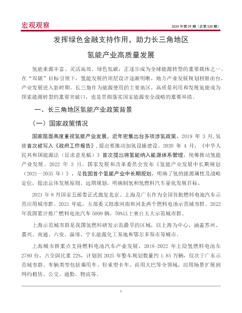 中银研究:《宏观观察》2024年第9期:发挥绿色金融支持作用,助力长三角地区氢能产业高质量发展.pdf