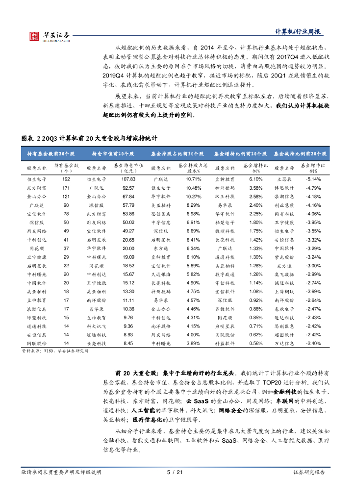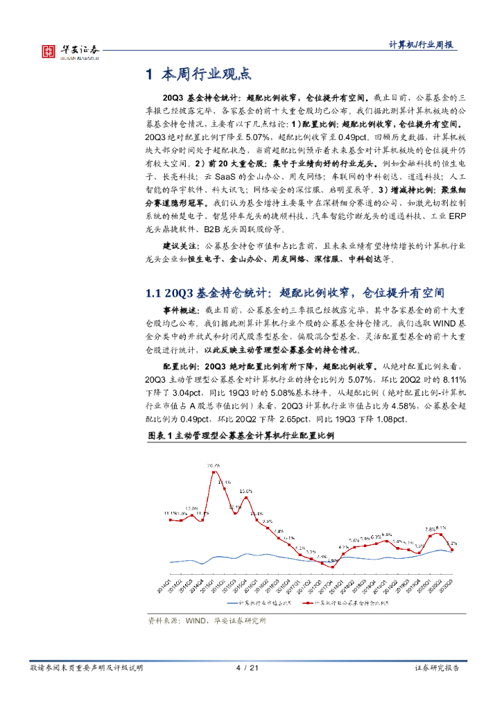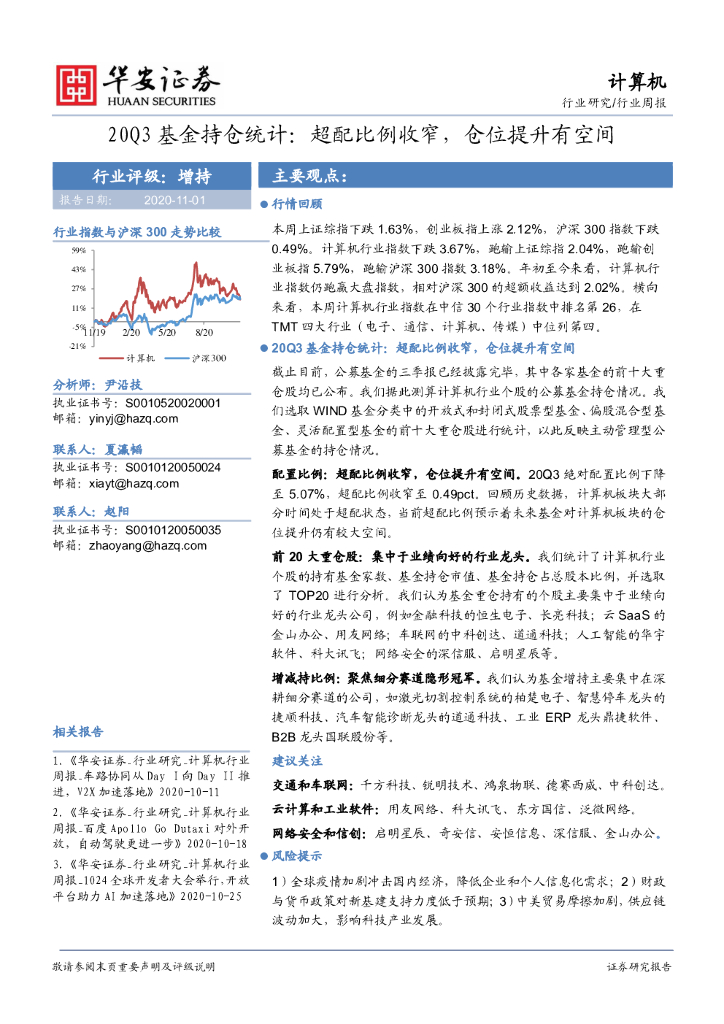 华安证券:计算机行业周报:20Q3基金持仓统计:超配比例收窄,仓位提升有空间.pdf