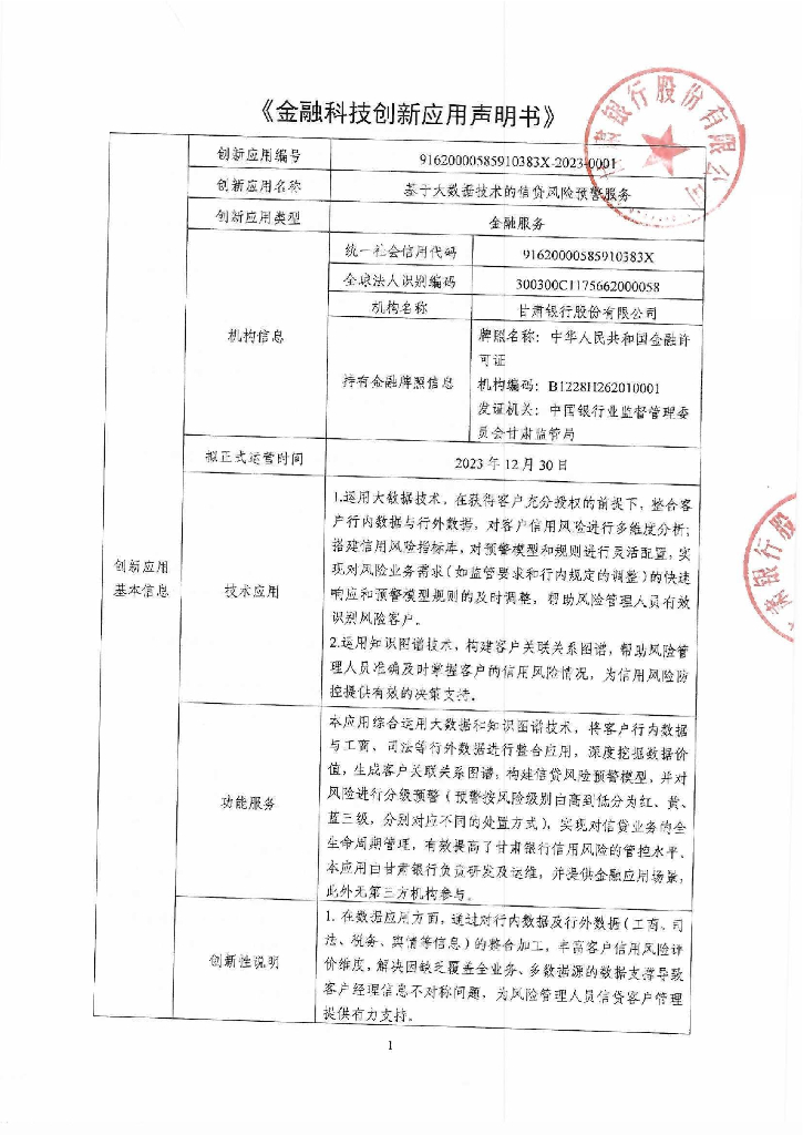 金融科技创新应用声明书:基于大数据技术的信贷风险预警服务.pdf