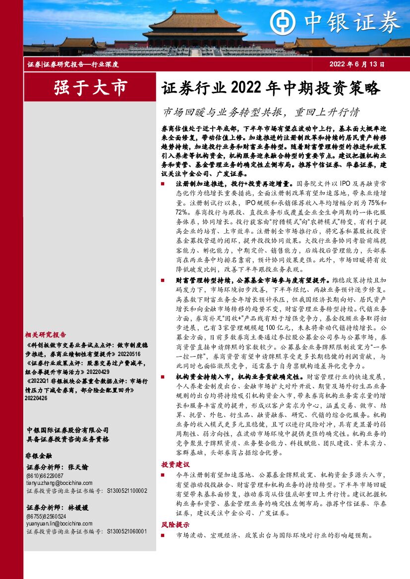 中银证券:证券行业2022年中期投资策略:市场回暖与业务转型共振,重回上升行情.pdf