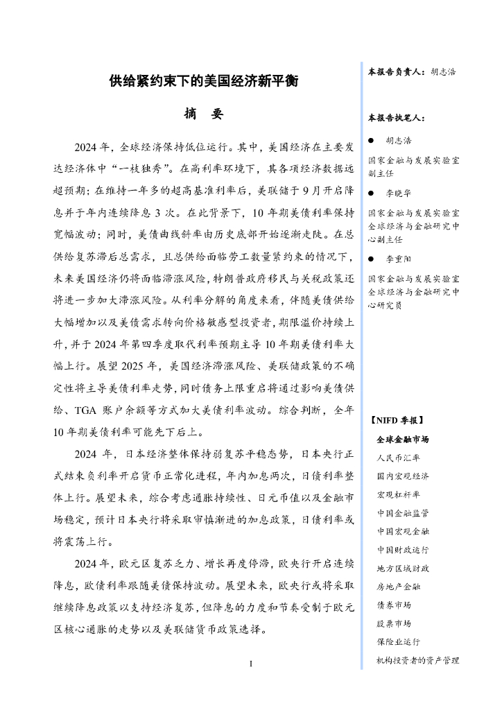 NIFD季报:供给紧约束下的美国经济新平衡——2024年度全球金融市场.pdf