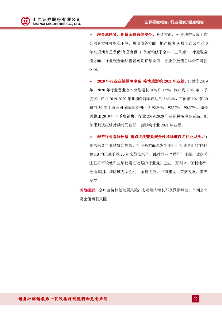 山西证券:房地产行业二季度投资策略:短期疫情不改行业长期趋势 关注安全和稳定的龙头.pdf