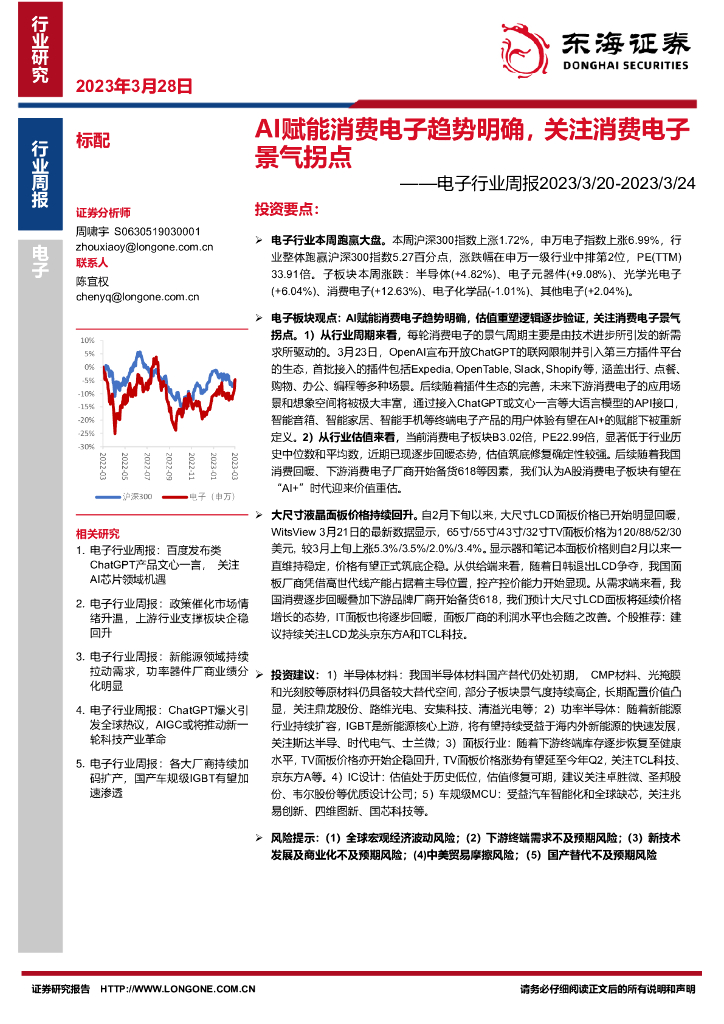 东海证券:电子行业周报:AI赋能消费电子趋势明确,关注消费电子景气拐点.pdf