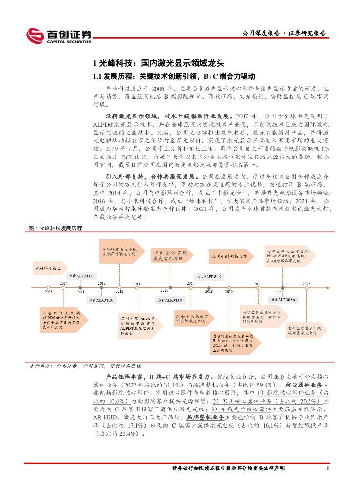 首创证券:光峰科技(688007)-公司深度报告:技术壁垒高筑,车载业务蓄势远航.pdf