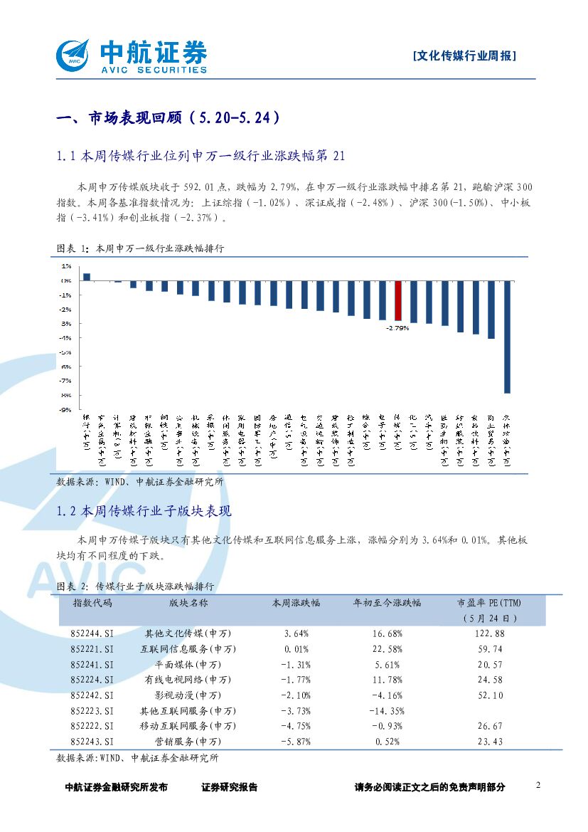中航证券:文化传媒行业周报:风险因素有待释放,精选低估值细分龙头.pdf