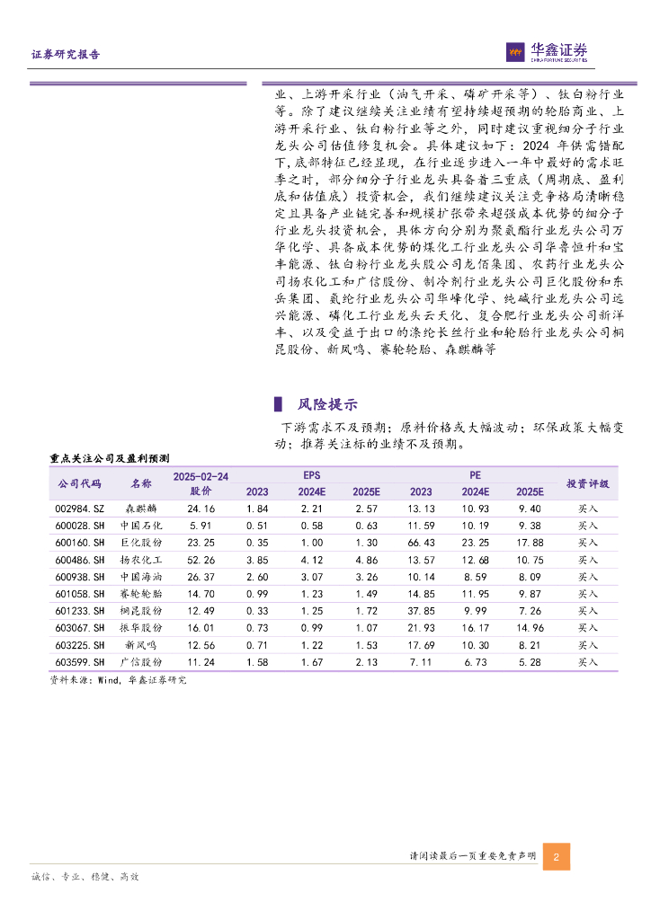 华鑫证券:基础化工行业周报:液氯、硫酸等涨幅居前,建议继续关注钛白粉板块和轮胎板块.pdf