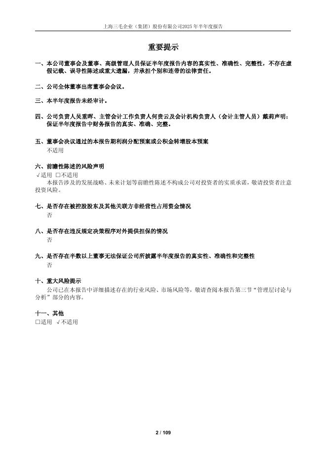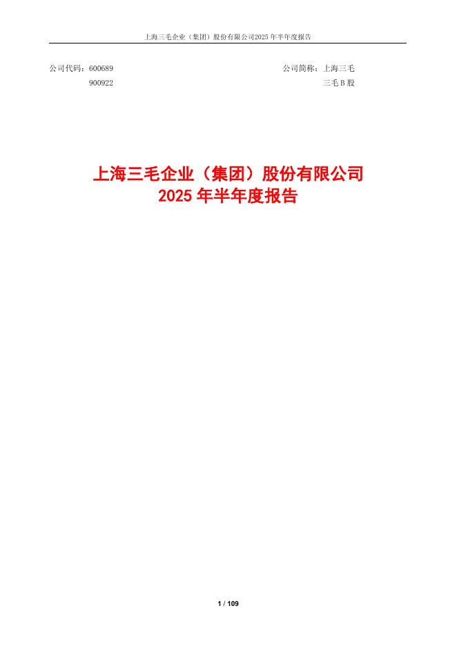 600689-上海三毛:上海三毛企业(集团)股份有限公司2025年半年度报告.pdf