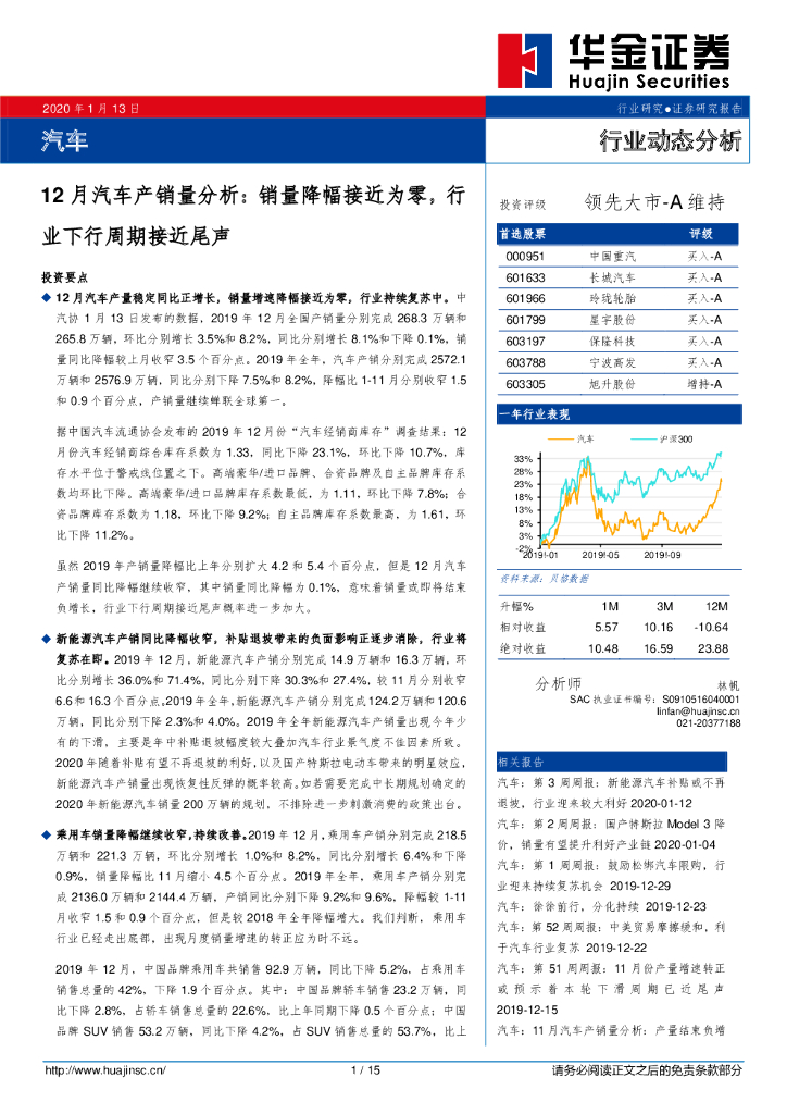 华金证券:12月汽车产销量分析:销量降幅接近为零,行业下行周期接近尾声.pdf