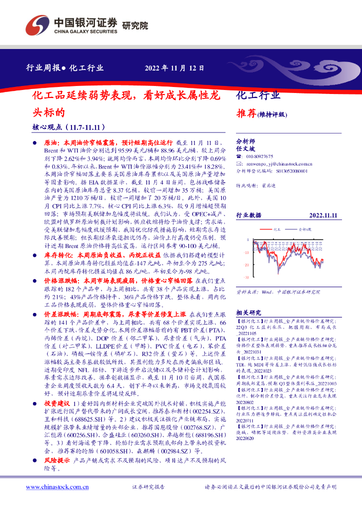 中国银河:化工行业周报:化工品延续弱势表现,看好成长属性龙头标的.pdf