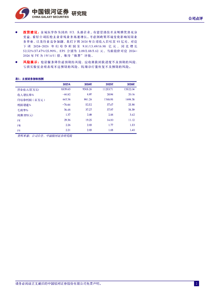 中国银河:金域医学(603882)-2023年年报及2024年一季报业绩点评:业绩阶段性承压,依然看好未来前景.pdf