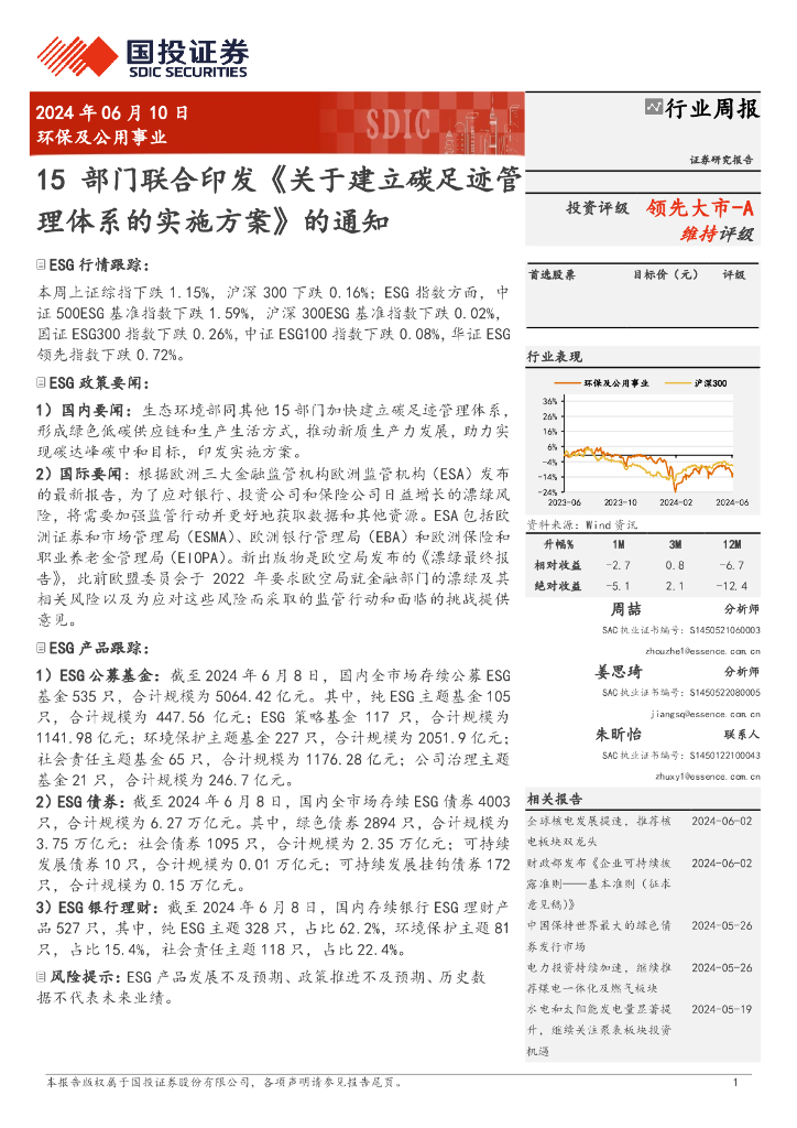 国投证券:环保及公用事业行业周报:15部门联合印发《关于建立碳足迹管理体系的实施方案》的通知.pdf