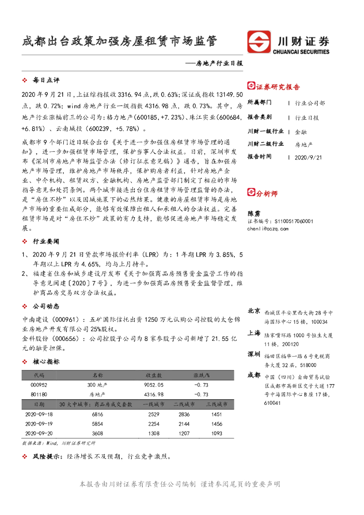 川财证券:房地产行业日报:成都出台政策加强房屋租赁市场监管.pdf