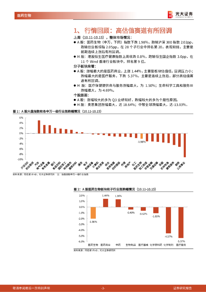 光大证券:医药生物行业跨市场周报:三季报业绩期来临,关注业绩与估值匹配的核心赛道.pdf