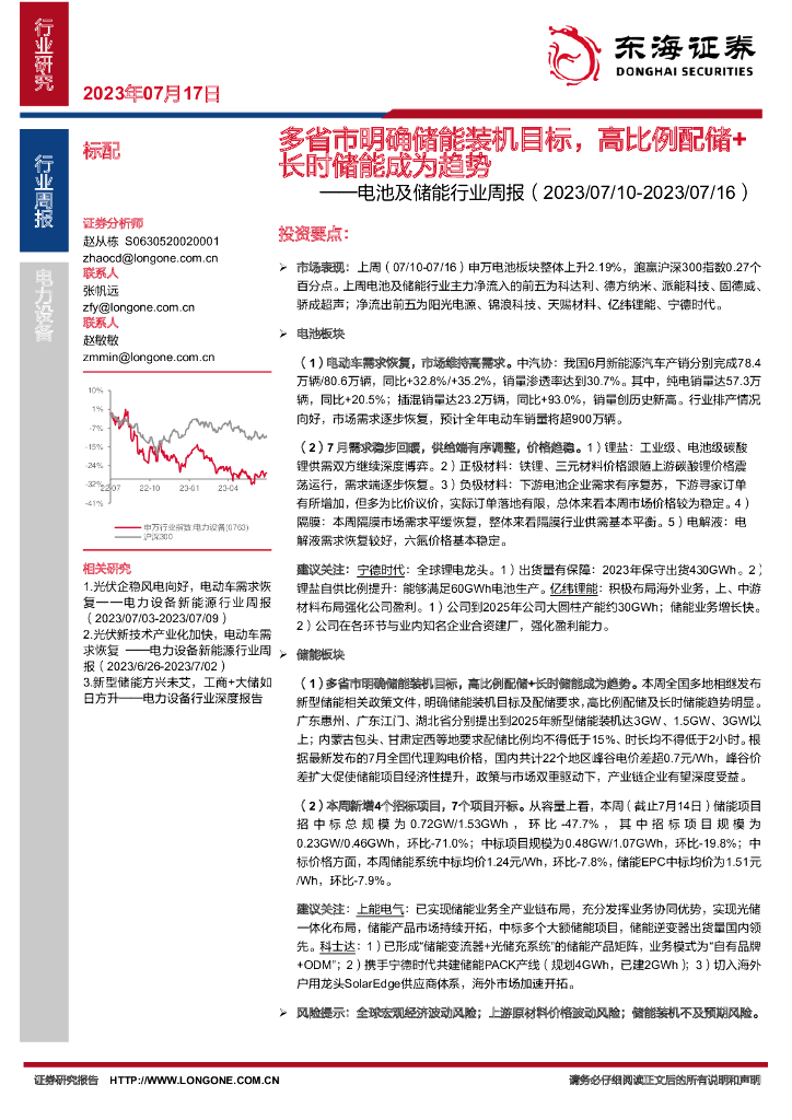 东海证券:电池及储能行业周报:多省市明确储能装机目标,高比例配储+长时储能成为趋势.pdf