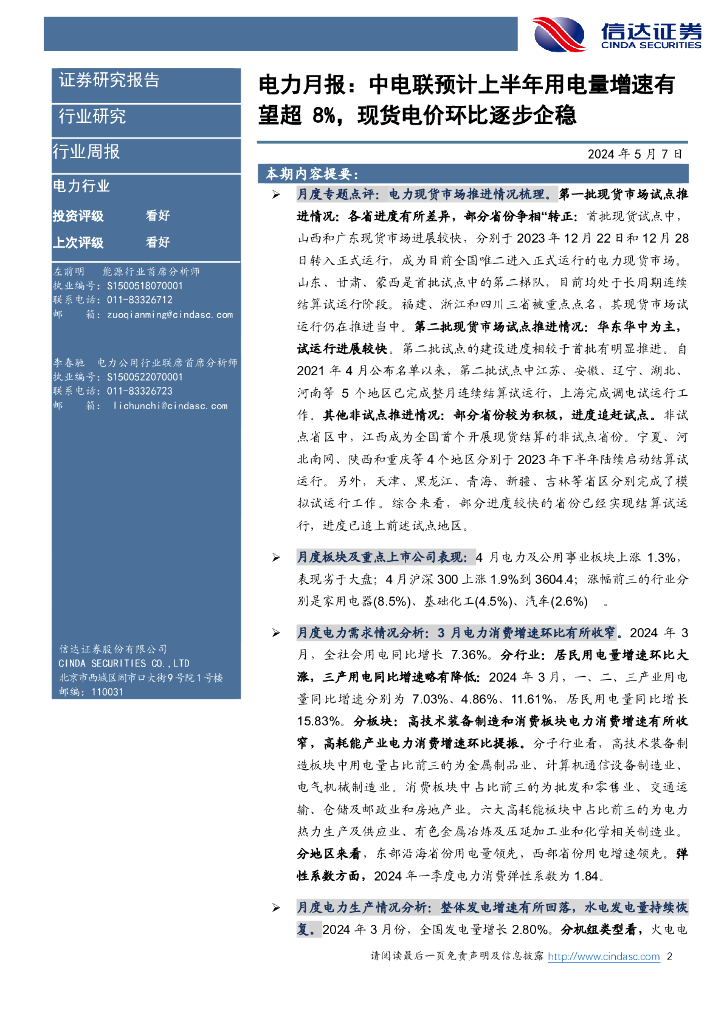 信达证券:中电联预计上半年用电量增速有望超8%,现货电价环比逐步企稳—电力行业3月月报.pdf