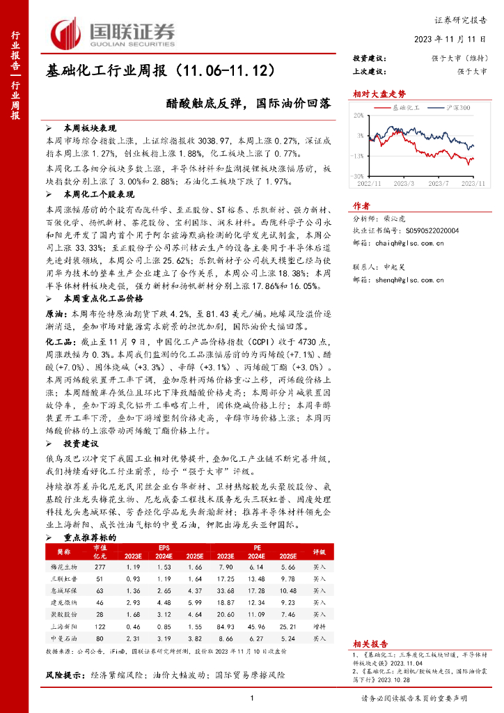 国联证券:基础化工行业周报:醋酸触底反弹,国际油价回落.pdf