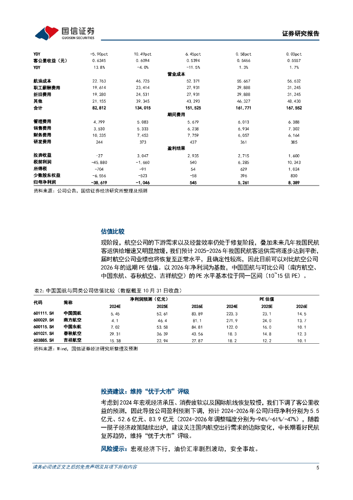 国信证券:中国国航(601111)-三季度净利同比下滑,中长期盈利弹性可期.pdf