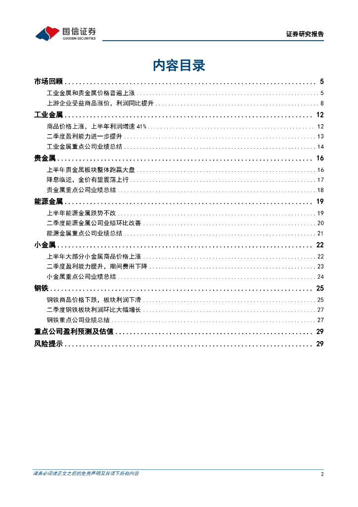 国信证券:金属行业2024年中报总结:工业金属和贵金属利润明显提升,继续看好上游资源板块.pdf