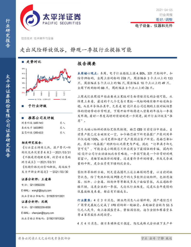 太平洋证券:电子设备、仪器和元件行业周报:走出风险释放低谷,静观一季报行业提振可能.pdf