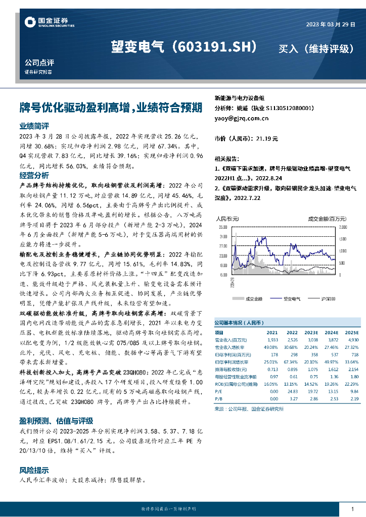 国金证券:望变电气(603191)-牌号优化驱动盈利高增,业绩符合预期.pdf