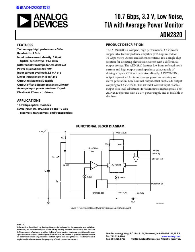 ANALOG DEVICES ADN2820 数据手册.pdf