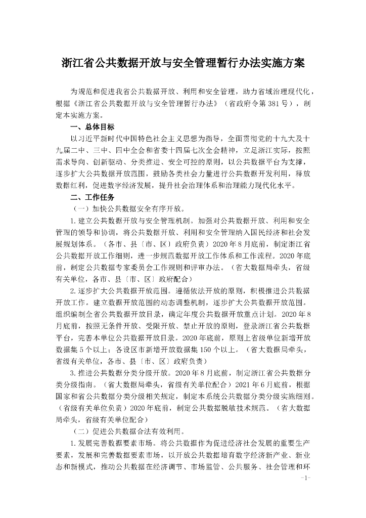 浙江省公共数据开放与安全管理暂行办法实施方案.doc