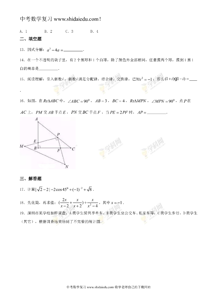 广东省深圳市中考数学试题(精校word版-含答案).doc