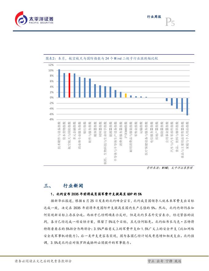 太平洋证券:军工行业周报:北约宣布2035年前将成员国军费开支提高至GDP的5%.pdf