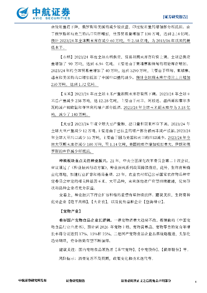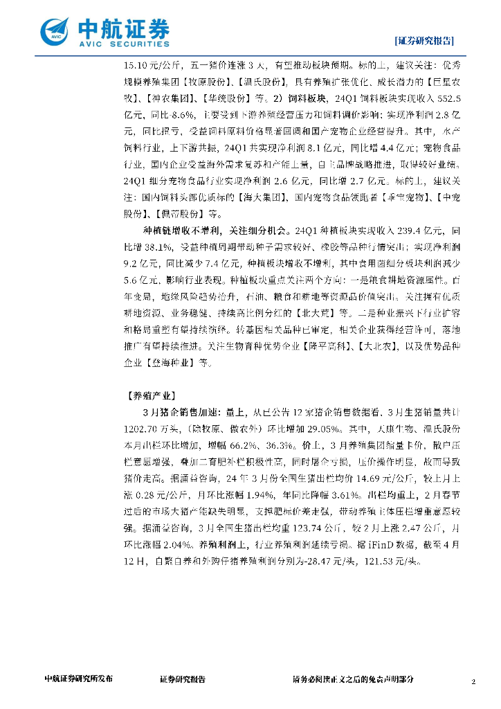 中航证券:农业周观点:Q1整体亏损同比收窄,行业重点细分向好.pdf