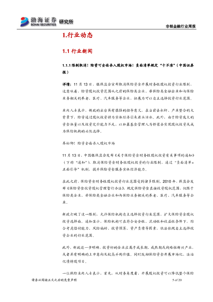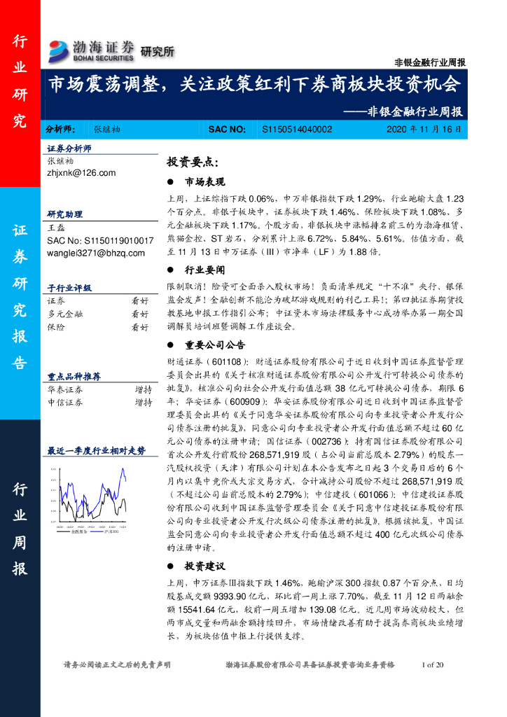 渤海证券:非银金融行业周报:市场震荡调整,关注政策红利下券商板块投资机会.pdf