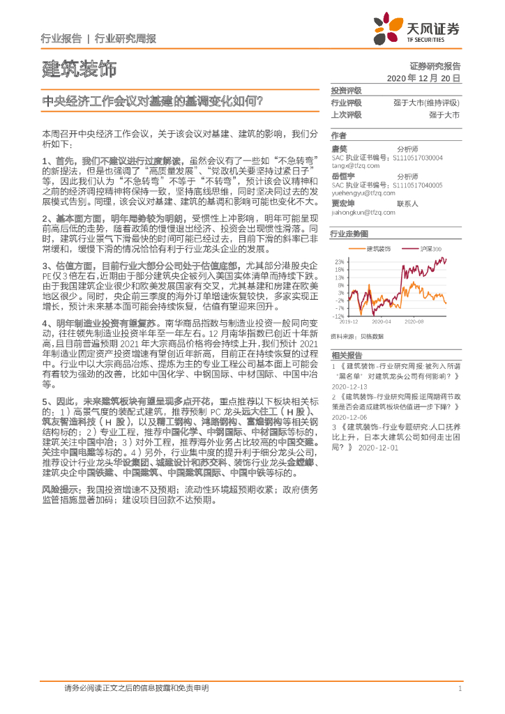天风证券:建筑装饰行业研究周报:中央经济工作会议对基建的基调变化如何?.pdf