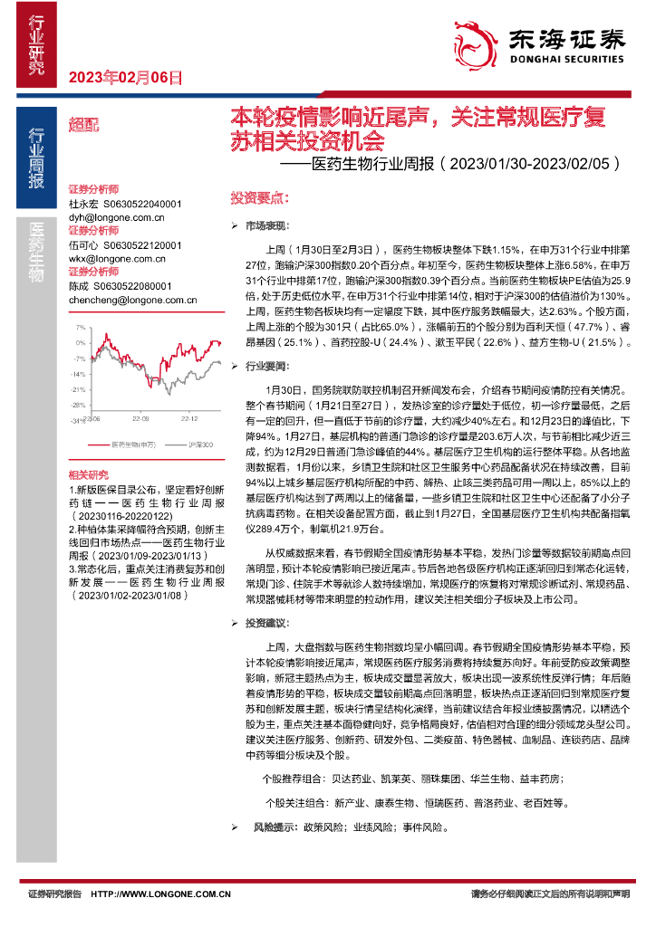 东海证券:医药生物行业周报:本轮疫情影响近尾声,关注常规医疗复苏相关投资机会.pdf
